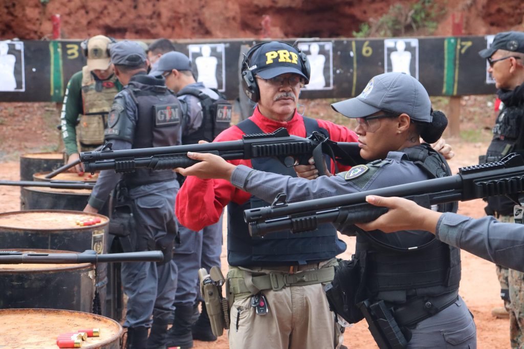 O treinamento, que contou com a participação de 20 policiais, teve como objetivo aprimorar as habilidades técnicas no manuseio e emprego de armamentos, como pistola calibre .40, fuzil 5,56, SMT .40 e espingarda calibre 12.