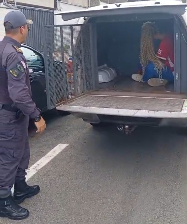 Diante das informações, o policial iniciou diligências e, durante o acompanhamento, a suspeita entrou em um veículo Hyundai Veloster, de cor preta, placa OLG-6B58, onde estava um comparsa. Ao perceber a aproximação policial, a dupla tentou fugir, mas foi interceptada após breve perseguição.